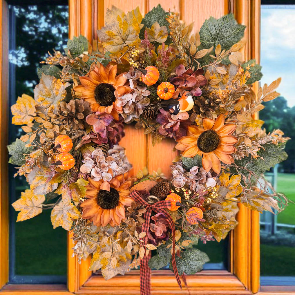 Wianek jesienny na drzwi wykonany z naturalnych materiałów, mchu, szyszek i suszonych kwiatów, średnica ok. 28cm